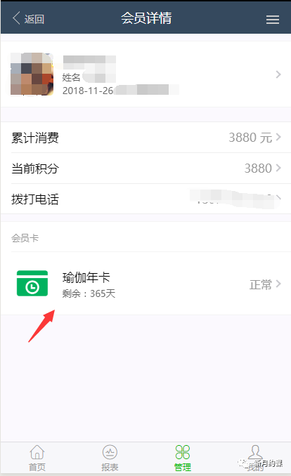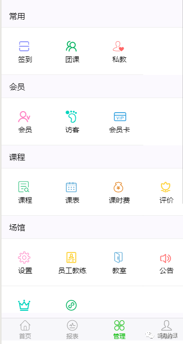 5. 添加会员。管理-会员管理,右上角点击“+”号,把二维码群发给学员,学员用自己微信扫一扫二维码,绑定手机号之后就可以了,馆主可以在访客里面看到这些会员。