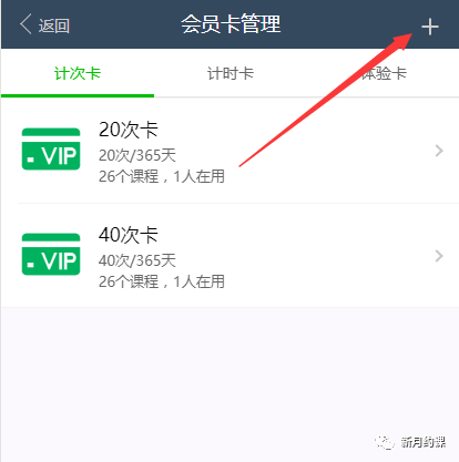 4. 添加会员卡。管理-会员卡,右上角点击“+”号,选择会员卡类型,名称,价格,等等信息,保存。