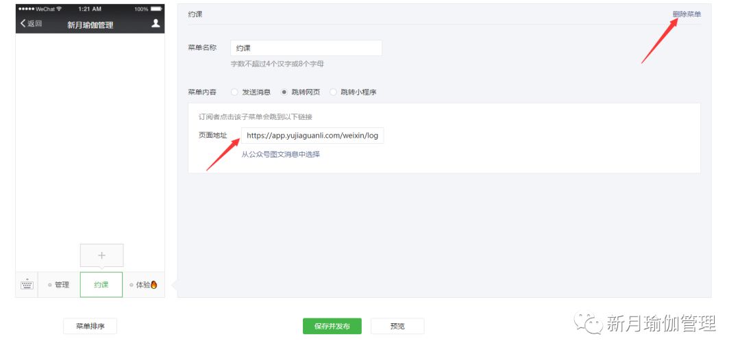 菜单名称:可以自定义,一般我们就填写“约课”。